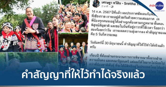 กรุงเทพฯ 28 มิ.ย.- “เศรษฐา” โพสต์คำสัญญาที่ให้ไว้ทำได้จริงแล้ว ขอบคุณ “นายกฯ แพทองธาร” ให้ความสำคัญพี่น้องชาติพันธุ์มีสิทธิอยู่ในประเทศไทยได้อย่างถูกต้องตามกฎหมาย นายเศรษฐา ทวีสิน อดีตนายกรัฐมนตรี โพสต์เฟซบุ๊กระบุว่า 14 ก.ค. 2567 ปีที่แล้ว ผมประกาศชัดเจนกับพี่น้องชาติพันธุ์ที่เชียงราย เราจะอยู่ด้วยกันด้วยความเสมอภาค เท่าเทียม พี่น้องทุกคนจะอยู่ได้อย่างถูกต้องตามกฎหมาย ขั้นตอนการพิสูจน์สัญชาติ และขอใบถิ่นที่อยู่ถาวรที่ใช้เวลา ร้อยกว่า สองร้อยกว่าวัน เราจะลดความยุ่งยากลง คำสัญญาของผมคือ 5 วันก็ควรจะพอ วันจันทร์นี้ 30 มิถุนายนนี้ คำสัญญาที่ให้ไว้ทำได้จริงแล้วครับ เกือบปี ที่ต้องผ่านกระบวนการการพิจารณาทั้งจากฝ่ายความมั่นคง และคณะรัฐมนตรี แต่ผมก็ดีใจมากไม่น้อยไปกว่าพี่น้องชาติพันธุ์ ที่จะได้มีสิทธิอยู่ในประเทศไทยได้อย่างถูกต้องตามกฎหมาย ลูกหลานจะได้ใช้สัญชาติไทย ได้สิทธิขั้นพื้นฐานด้านการศึกษา รวมไปถึงสวัสดิการด้านอื่นๆ ได้เติบโตเป็นอนาคตของชาติ คนวัยทำงานจะได้จะก่อร่างสร้างตัว มีความมั่นคงในชีวิต ได้รับสิทธิภายใต้รัฐธรรมนูญในฐานะคนไทยคนหนึ่ง และเป็นกำลังในการพัฒนาประเทศต่อไป ขอขอบคุณท่านนายกฯ แพทองธาร Ing Shinawatra ที่ให้ความสำคัญพี่น้องชาติพันธุ์ทุกๆชีวิต รวมถึงผู้ที่เกี่ยวข้องทุกท่านๆที่ทำให้มีวันนี้ครับ และขอบคุณคุณหมอพรหมมินทร์ ที่ช่วยผลักดันคำสัญญาในวันนั้นให้สำเร็จในวันนี้ วันข้างหน้าถ้ามีโอกาสกลับไปที่เชียงราย […]