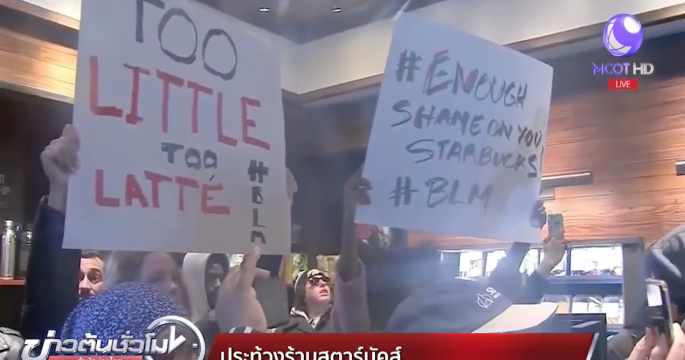 กลุ่มผู้ประท้วงบุกเข้าไปในร้านกาแฟสตาร์บัคส์ เมืองฟิลาเดลเฟียของสหรัฐฯ เรียกร้องให้ไล่ผู้จัดการร้านออก หลังมีเหตุจับกุมชายผิวสี 2 คนในร้าน