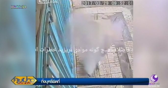 คลิประทึก! ชายอิหร่านทิ้งก้นบุหรี่ลงท่อ ก่อนเกิดระเบิด