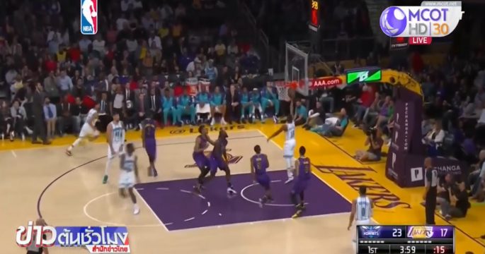 บาสเก็ตบอลเอ็นบีเอ สหรัฐ แอลเอ เลเกอร์ส เปิดสนามสเตเปิ้ล เซ็นเตอร์ เอาชนะ ชาร์ล็อตต์ ฮอร์เนตส์ 129-115 คะแนน รั้งอันดับ 11 สายตะวันตก ส่วนชาร์ลอตต์ ฮอร์เนตส์ แพ้เป็นเกมที่ 40 อยู่อันดับ 10 สายตะวันออก