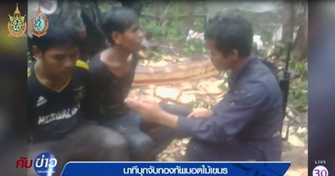 ชุดปฏิบัติการวัดเขาศาลาอตุลฐานะจาโร จ.สุรินทร์ ล้อมจับกุมผู้ต้องหาชาวกัมพูชา 3 ราย ลักลอบตัดไม้ พร้อมของกลางไม้พะยูงกว่า 100 ท่อน ยังหลบหนีอีกกว่า 55 ราย