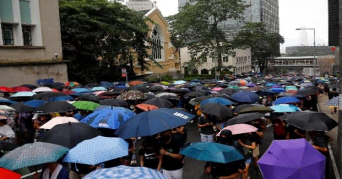 ชาวฮ่องกงฝ่าฝนตกหนักชุมนุมอย่างสงบวันนี้