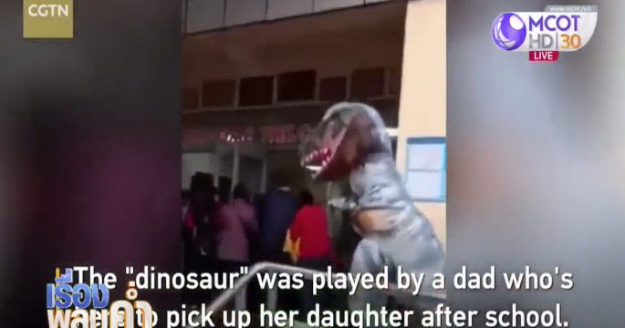 ไม่ใช่ไดโนเสาร์ย้อนยุคกลับมาใหม่แต่นี่คือสุดยอดคุณพ่อชาวจีน ลงทุนสวมชุดไดโนเสาร์ไปรับลูกสาววัย 3 ขวบ ที่โรงเรียนในนครเซี่ยงไฮ้