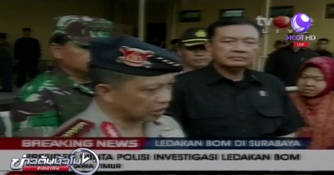 อินโดนีเซีย 13 พ.ค.-เจ้าหน้าที่อินโดนีเซีย เผยโฉมมือระเบิดฆ่าตัวตาย ที่ก่อเหตุโจมตีโบสถ์คริสต์ 3 แห่งในเมืองสุระบายา จนมีผู้เสียชีวิต 13 คน บาดเจ็บ 41 คน พบเป็นครอบครัวที่มาจากซีเรีย ด้านประธานาธิบดีโจโก วิโดโด กล่าวประณามว่าเป็นการกระทำที่ป่าเถื่อน พร้อมสั่งสืบสวนให้ถึงที่สุด ขณะที่นายติโต้ คาร์นาเวียน หัวหน้าสำนักงานตำรวจแห่งชาติอินโดนีเซีย กล่าวว่า มือระเบิดฆ่าตัวตาย 3 คนลงมือโจมตีโบสถ์ 3 แห่ง โดยคนเป็นพ่อระเบิดรถยนต์และลูกชาย 2 คนวัย 18 และ 16 ปี ใช้รถจักรยานยนต์ ส่วนแม่และน้องเล็กวัย 12 และ 9 ปีก็ร่วมโจมตีด้วย.-สำนักข่าวไทย