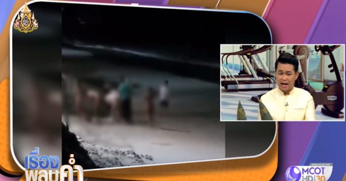 นักท่องเที่ยวชาวต่างชาติเกือบ 10 คน เปลือยกายลงเล่นน้ำชายหาดอ่าวนาง แหล่งท่องเที่ยวชื่อดังกระบี่