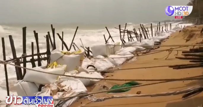 คลื่นสูง 3 เมตร ซัดถล่มชายฝั่งบ้านทุ่งประดู่ บ้านเรือนชาวทับสะแกเสียหายหลายหลัง วอนภาครัฐช่วยสร้างเขื่อนกั้นคลื่นให้เสร็จโดยเร็ว