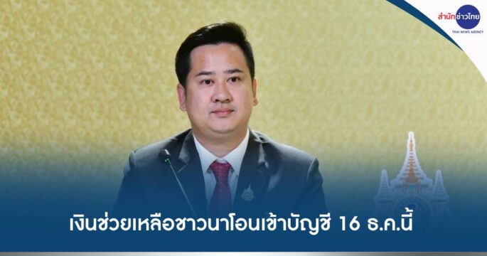 รัฐบาลย้ำ 16 ธ.ค.นี้ เงินช่วยเหลือชาวนาโอนเข้าบัญชี เตือนเกษตรกรเช็กสถานะ เงินช่วยเหลือชาวนา ไร่ละ 1,000 บาท ผ่าน efarmer.doae.go.th หากข้อมูลมีปัญหารีบติดต่อ ธ.ก.ส. ในพื้นที่