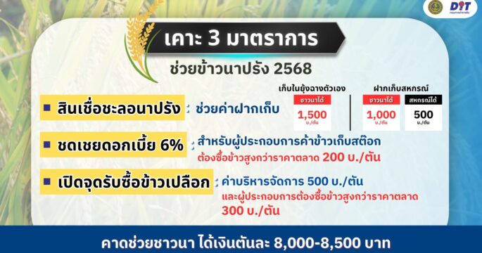 รัฐบาลเตือนเกษตรกร อย่าลืมลงทะเบียนผู้ปลูกข้าวนาปรัง ปี 68 รับเงินช่วยเหลือไร่ละ 1,000 บาท ก่อน 30 เม.ย.นี้