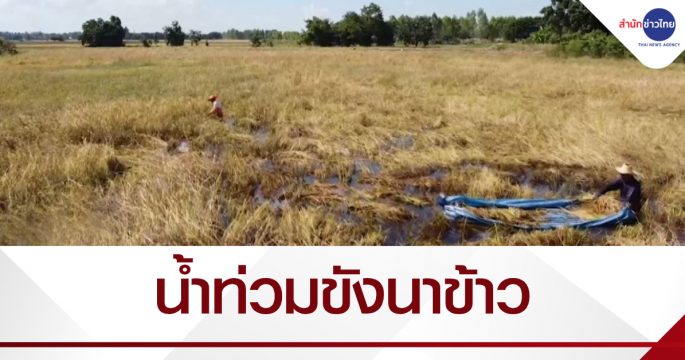 ชาวนาโคราชเดือดร้อนหนัก น้ำท่วมขังนาข้าวนานกว่า 3 สัปดาห์ ส่งผลให้ข้าวที่กำลังออกรวงใกล้เก็บเกี่ยวเสียหายนับพันไร่
