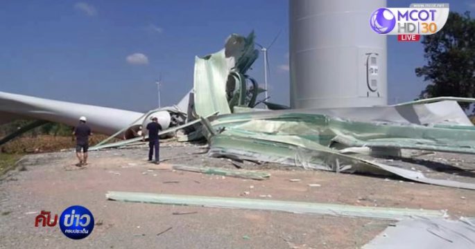 กังหันลมยักษ์ระเบิด ใบพัดกระจาย ชาวบ้านผวา