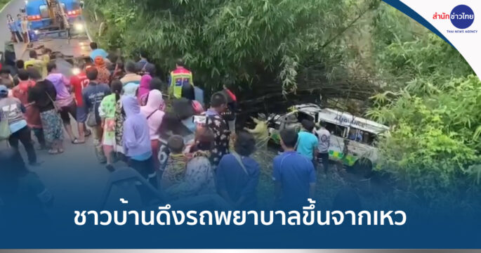พลังสามัคคี ชาวบ้านนับร้อยดึงรถพยาบาลขึ้นจากเหว