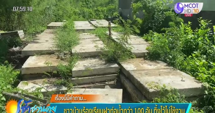 ชาวหมู่บ้านชุมชนการเคหะรังสิต คลอง 12 อ.ลำลูกกา จ.ปทุมธานี ร้องเรียนว่ามีฝาปิดท่อน้ำทิ้งที่ใช้การไม่ได้เกือบ 100 ฝา นำมาทิ้งไว้ในพงหญ้าของชุมชน