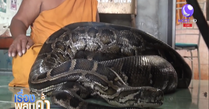 “แม่ทองคำ” งูเหลือมยักษ์เพศเมียยาวกว่า 6 เมตร อาศัยอยู่ในวัดดังเมืองคอน ชาวบ้านเชื่อสามารถรักษาอาการป่วยได้
