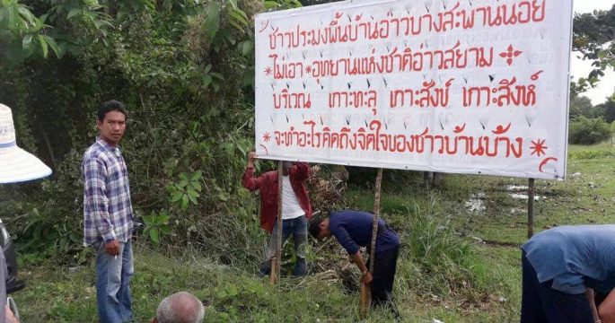 ชาวประมงบางสะพานน้อยขึ้นป้ายไม่เอาอุทยานอ่าวสยาม