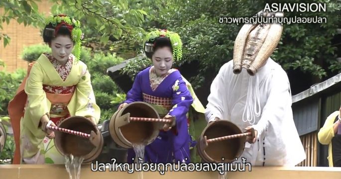 เป็นประจำทุกปี พระและประชาชนชาวญี่ปุ่นทำบุญปล่อยปลาลงสู่แม่น้ำชิราคาวะที่เมืองเกียวโต ถือเป็นการทำบุญกุศลเพื่อความเป็นมงคลแก่ชีวิต ติดตามจากรายงานของ NHK พันธมิตรของสำนักข่าวไทยในเครือข่ายแลกเปลี่ยนข่าว ASIAVISION