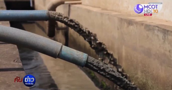 การประปาส่วนภูมิภาค ขอนแก่น จ้างชาวมอแกน จากภูเก็ต ลงไปดูดตะกอน-โคลน ในบ่อน้ำใส ที่โรงกรองน้ำบ้านโกทา แก้ปัญหาน้ำประปาในพื้นที่ขุ่น