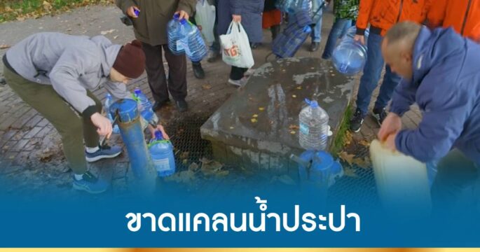 ชาวยูเครน กำลังเจอกับปัญหาขาดแคลนน้ำประปา หลังรัสเซียระดมโจมตีหนัก ผู้คนจำนวนมากต้องนำขวด หรือถังน้ำพลาสติก ไปต่อแถวยาวนานนับชั่วโมง เพื่อรองน้ำจากบ่อ