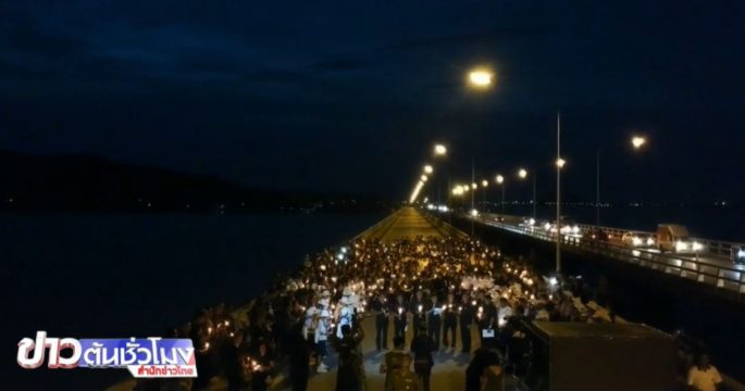ชาวสงขลาร่วมกันปิดสะพานติณสูลานนท์ชั่วคราว จุดเทียนแสดงความอาลัยต่อ พล.อ.เปรม ติณสูลานนท์ ร่วมระลึกถึงคุณงามความดี