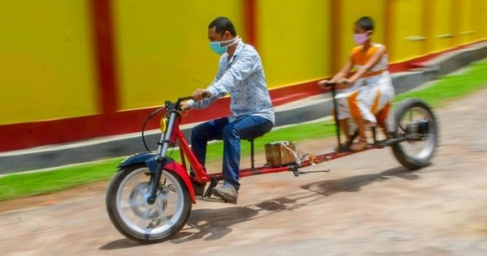 ช่างชาวอินเดียประดิษฐ์มอเตอร์ไซค์เว้นระยะห่างทางสังคม