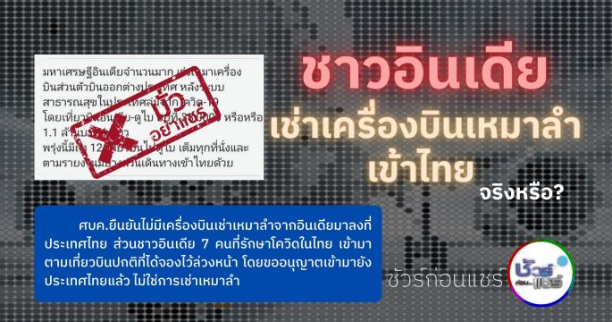 ชัวร์ก่อนแชร์ : มหาเศรษฐีชาวอินเดียแห่เช่าเครื่องบินเหมาลำเข้าไทย จริงหรือ?