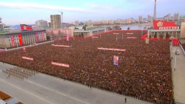 ชาวเกาหลีเหนือหลายพันคนชุมนุมในกรุงเปียงยางวันนี้ พากันตะโกนคำขวัญคอมมิวนิสต์และสนับสนุนนายคิม จองอึน ผู้นำประเทศ