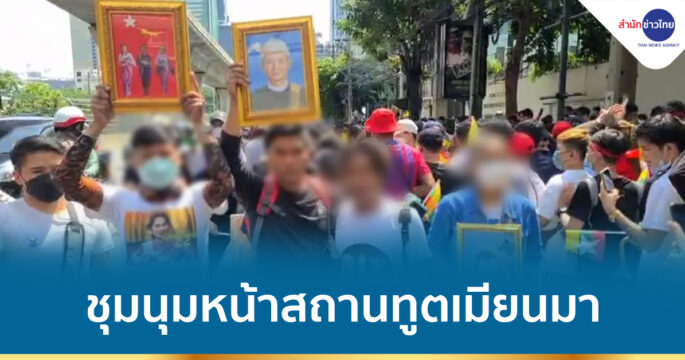 ชาวเมียนมาชุมนุมประท้วงหน้าสถานทูตเมียนมาประจำประเทศไทย กรณีประหารชีวิต 4 นักกิจกรรม ภาพรวมการชุมนุมยังเป็นไปด้วยความเรียบร้อย