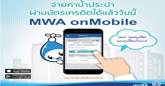 กปน.เปิดบริการจ่ายค่าน้ำผ่านบัตรเครดิตผ่านแอพฯ MWA onMobile ขานรับไทยแลนด์ 4.0