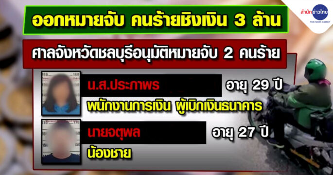 ออกหมายจับแล้ว! พนักงานการเงินและน้องชาย ในคดีชิงเงิน 3.4 ล้านบาท บนรถตู้ที่ จ.ชลบุรี หลังเล่นละครบทรักสามเส้า จนคนขับรถตู้ถูกไล่ชก ต้องวิ่งหนีเอาชีวิตรอด