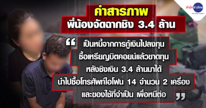 เปิดคำสารภาพ พี่น้องจัดฉากเรื่องชู้สาว ชิงเงิน 3.4 ล้านบาท จากรถตู้โรงงานเฟอร์นิเจอร์ สารภาพอยากได้เงินไปใช้หนี้ เพราะลงทุนบิตคอยน์เจ๊ง เป็นอุทาหรณ์และเป็นภาพสะเทือนใจอย่างยิ่ง เมื่อตัวน้องชายผู้สวมบทบาทไรเดอร์ ร่ำไห้กอดลาลูกน้อยและแม่ครั้งสุดท้าย