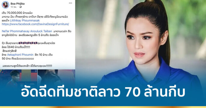 “มาดามโบ” อัดฉีดทีมชาติลาว 70 ล้านกีบ หากชนะทีมชาติไทย รอบรองฯ ฟุตบอลยู 23 ปี ชิงแชมป์อาเซียน
