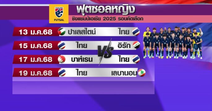 จีน 13 พ.ค. – “โค้ชโอ” ธนาธร สันทนาประสิทธิ์ ย้ำแข้งฟุตซอลหญิงไทยห้ามประมาทฮ่องกง ก่อนดวลกันรอบ 8 ทีมสุดท้าย ศึกชิงแชมป์เอเชีย 2025 ความเคลื่อนไหวของทีมฟุตซอลหญิงทีมชาติไทยชุดใหญ่ อันดับ 5 ของโลก ที่กำลังทำการแข่งขันฟุตซอลหญิงชิงแชมป์เอเชีย 2025 AFC Women’s Futsal Asian Cup 2025 รอบ 8 ทีมสุดท้าย โดยจะลงสนามพบกับ ฮ่องกง อันดับ 29 ของโลก ในวันนี้ เวลา 13.00 น. ตามเวลาประเทศไทย ที่สนามกีฬาโฮฮอต สาธารณรัฐประชาชนจีน ซึ่งเมื่อวานนี้ ทีมสาวไทยไม่ได้ฝึกซ้อม เพื่อให้นักเตะได้พักฟื้นร่างกาย หลังลงเล่นในรอบแบ่งกลุ่ม ทำผลงานชนะ บาห์เรน 4-0, เสมอ อินโดนีเซีย 0-0, ชนะ ญี่ปุ่น 3-1 คว้าแชมป์กลุ่มซี ได้สำเร็จ […]