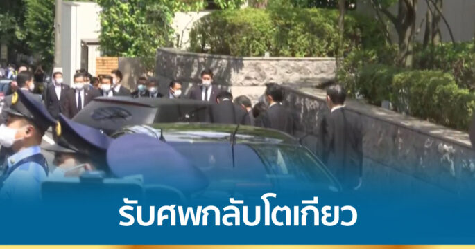 เคลื่อนศพ นายชินโซ อาเบะ อดีตนายกรัฐมนตรีญี่ปุ่น กลับบ้านพักในกรุงโตเกียว หลังถูกมือปืนลอบสังหาร ที่เมืองนาระ วานนี้ (8 ก.ค.)