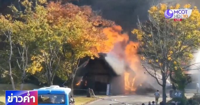 ไฟไหม้บ้านโบราณที่เป็นมรดกโลกในญี่ปุ่น เสียหายไม่มาก