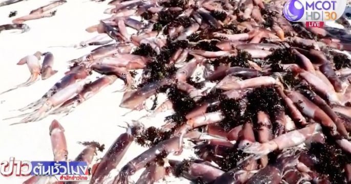 บริเวณชายหาดบาเฮีย อิงเกลซา ในแคว้นอาตากามา ของชิลี เกิดปรากฏการณ์ปลาหมึกจำนวนมากเกยตื้นเต็มชายหาด สร้างความวิตกกังวลให้กับชาวบ้านและนักอนุรักษ์สิ่งแวดล้อม