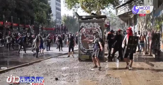 ชาวชิลีเดินหน้าประท้วงอย่างต่อเนื่อง ล่าสุดเกิดการปะทะระหว่างตำรวจกับกลุ่มผู้ประท้วงในกรุงซานติอาโก
