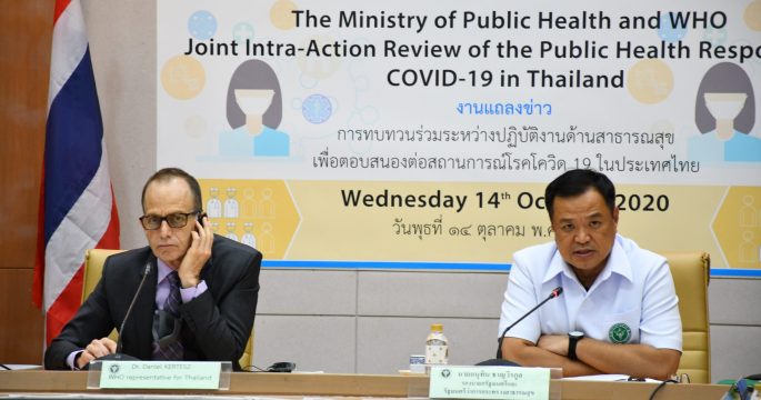 สธ.14 ต.ค.-องค์การอนามัยโลก ชื่นชมไทยเป็นแบบอย่างในการควบคุมโรคโควิด-19 ถอดบทเรียน องค์ความรู้ในการควบคุมโรคนี้ไปใช้เป็นข้อมูลพื้นฐานทางระบาดวิทยาให้กับนานาประเทศ นายอนุทิน ชาญวีรกูล รองนายกรัฐมนตรีและรัฐมนตรีว่าการกระทรวงสาธารณสุข พร้อมนพ.แดเนียล เคอร์เทสซ์ ผู้แทนองค์การอนามัยโลกประจำประเทศไทย แถลงข่าวถอดบทเรียนร่วมระหว่างกระทรวงสาธารณสุข และองค์การอนามัยโลก ในการปฎิบัติงานด้านสาธารณสุขเพื่อตอบสนองตาอสถานการณ์โรคโควิด -19 ในประเทศไทย โดยองค์การอนามัยโลกชื่นชมประเทศไทยในด้านภาวะผู้นำที่เข้มแข็งในการตัดสินใจแก้ไขปัญหาสถานการณ์โควิด บนพื้นฐานข้อมูลและหลักฐานทางวิชาการรวมถึงการแก้ไขปัญหากระจายทรัพยากรให้ทุกคนเข้าถึงการบริหารจัดการผู้ป่วยให้มีประสิทธิภาพและรวดเร็วและการมีทีมสอบสวนโรคทุกพื้นที่กว่า 1,000 ทีม จึงทำให้สามารถผ่านพ้นวิกฤติไปได้ ทั้งนี้ ยังได้ย้ำว่าบทเรียนการแก้ไขปัญหาโควิดของแต่ละประเทศมีความแตกต่างกันขึ้นอยู่กับปัจจัยและสถานการณ์ในขณะนั้นสิ่งสำคัญที่ยังไม่ควรละเลยและประมาทไม่ได้ต้องปฏิบัติอย่างเสมอคือการสวมหน้ากากอนามัยมันล้างมือและมีเว้น ระยะห่างเพื่อเพิ่มความปลอดภัย นพ.แดเนียล กล่าวว่า ข้อมูลที่ได้รับจากกระทรวงสาธารณสุขจะนำไปปรับใช้เป็นข้อมูลพื้นฐานเชิงระบาดวิทยาและเชื่อมโยงกับนานาประเทศเพื่อเป็นแบบอย่างขณะเดียวกันมีความสนใจที่จะต้องการรับข้อมูลจากกลุ่มประเทศอาเซียนเช่นอินโดนีเซียซึ่งมีการแพร่ระบาดของโควิด-19 ไม่แตกต่างกันและพบว่าแก้ไขปัญหาได้ดี.-สำนักข่าวไทย