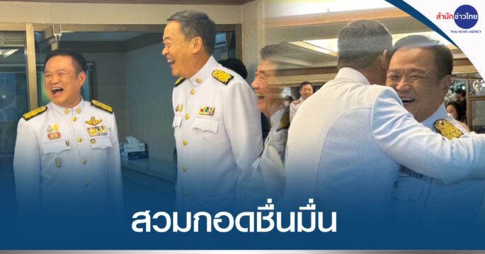 “เศรษฐา-อนุทิน” คุยชื่นมื่น สวมกอดย้ำสัมพันธ์