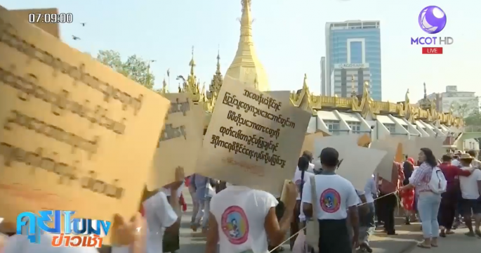 ชาวเมียนมาหลายร้อยคนพากันเดินขบวนประท้วงในนครย่างกุ้ง เนื่องจากไม่พอใจที่รัฐบาลประกาศจะแก้กฎหมายการชุมนุมโดยสันติในที่สาธารณะ