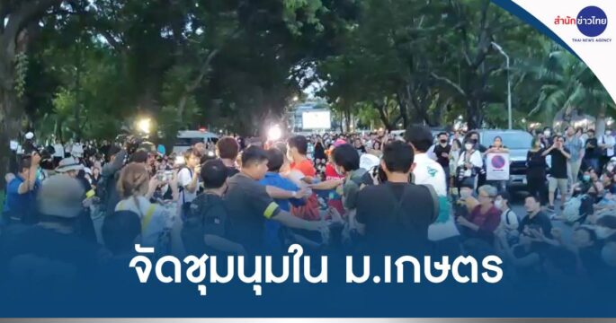 พรรคอามิตย์ใหม่ กลุ่มนิสิต ม.เกษตร จัดชุมนุมขจัด สว.ใจทราม แถลงการณ์ไม่เห็นด้วยกับพฤติกรรมของ สว. ที่ไม่เคารพเสียงมติของประชาชนที่เลือกตั้งมา