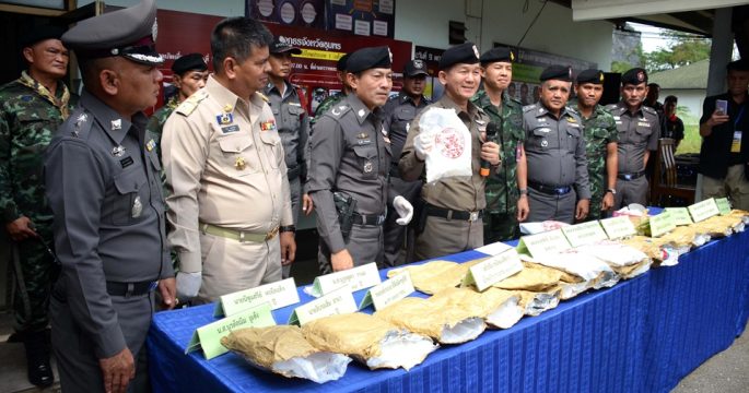 ชุมพร 6 ม.ค.-แก๊งยาเสพติดลักลอบขนเฮโรอีนหนัก 10 กก.มูลค่ากว่า 30 ล้าน จากภาคเหนือลงใต้ แต่ไปไม่รอด โดนจับยกแก๊งคาด่านตรวจชุมพรด้วยฝีมือของสุนัขดมกลิ่นของทหาร ผบช.ภ.8 สั่งเร่งขยายผลเกี่ยวข้องกับขบวนการก่อความไม่สงบชายแดนใต้หรือไม่ วันนี้(6 ม.ค.) ที่ด่านตรวจความมั่นคงบ้านพละ ถนนเพชรเกษม หมู่ 3 ต.เขาไชยราช อ.ปะทิว จ.ชุมพร พล.ต.ท.สรศักดิ์ เย็นเปรม ผู้บัญชาการตำรวจภูธรภาค 8 (ผบช.ภ.8) พร้อมด้วย พล.ต.ต.สนธิชัย อาวัฒนกุลเทพ ผบก.ภ.จ.ชุมพร นายพีระ กาญจนพงศ์ ผอ.สำนักงาน ป.ป.ส.ภาค 8 ร่วมแถลงผลการจับกุมเฮโรอีน หนัก 10.4 กก.พร้อมผู้ต้องหา 4 คน รถยนต์กระบะ 1 คัน โดยจับกุมได้ขณะผู้ต้องหาทั้ง 4 มีนายนายอิบรอเฮ็ม อาแว อายุ 40 ปี ชาว อ.บาเจาะ จ.นราธิวาส เป็นคนขับรถยนต์กระบะมิตซูบิชิ […]