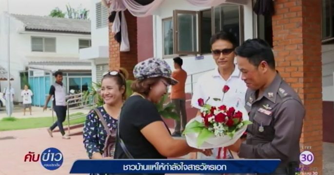 ชาวบ้านทยอยแห่มอบดอกไม้ให้กำลังใจ “สารวัตรเอก” ถูกตั้งกรรมการสอบวินัย หลังโพสต์วิจารณ์ออกกฎหมายจับคนนั่งกระบะท้าย