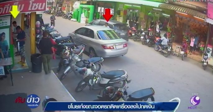 หนุ่มจอดรถเก๋งติดเครื่องลงไปกดเงินตู้เอทีเอ็มข้างห้างดังกลางเมืองชุมพร ห่างกันเพียง 3 เมตร แค่นาทีเดียว ถูกคนร้ายฉกรถหายไป โชคดีตำรวจสกัดจับได้