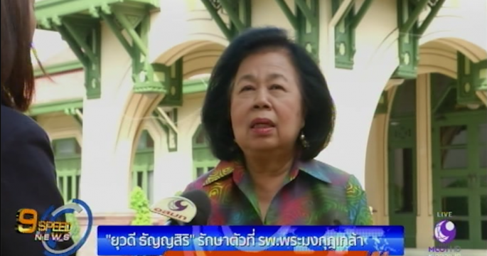 ยุวดี ธัญญสิริ อดีตผู้สื่อข่าวอาวุโสประจำทำเนียบรัฐบาล เลือดออกในทางเดินอาหารช็อกหมดสติ เข้ารับการรักษาที่ห้อง ICU โรงพยาบาลพระมงกุฎเกล้า อาการยังไม่คงที่
