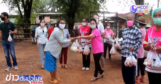 ชาวบ้านเสริมสุข อ.หนองบุญมาก จ.นครราชสีมา นำข้าวสาร 2 ตัน และไข่ไก่ 6,000 ฟอง แจกจ่ายให้กับผู้ได้รับผลกระทบจากโควิด-19