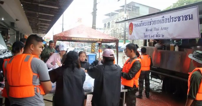 กองทัพภาคที่ 4 ส่งรถครัวภาคสนามปรุงอาหารร่วมช่วยเหลือผู้ประสบภัยน้ำท่วมนครศรีธรรมราช ขณะที่น้ำป่ายังไหลบ่าเข้าเขตเทศบาลนครศรีฯ