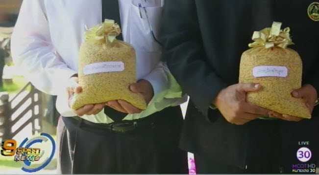 กรมการข้าวและสมาคมผู้รวบรวมและจำหน่ายเมล็ดพันธุ์ข้าว จ.สุพรรณบุรี ปล่อยขบวนเมล็ดพันธุ์ข้าวพระราชทาน กข 57 จำนวน 60 ตัน ช่วยชาวใต้