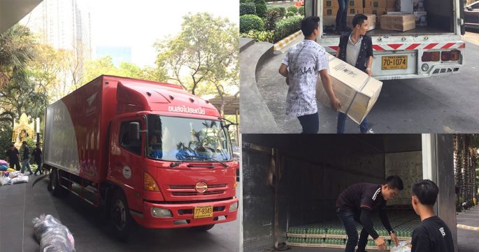 ไปรษณีย์ไทย สนับสนุนรถขนส่งนำ้ดื่ม อาหารแห้ง จาก บมจ.อสมท ถ.พระราม 9 ไปยัง สถานีวิทยุ อสมท 102MHz จ.สุราษฎร์ธานี มอบสิ่งของบรรเทาทุกข์ให้ผู้ประสบภัยน้ำท่วม