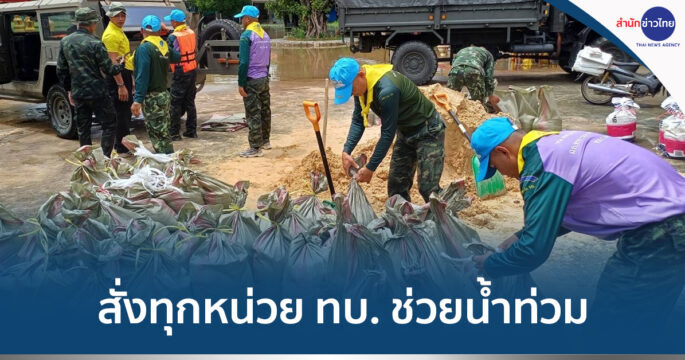 ผบ.ทบ. สั่งการหน่วยทหารเข้าช่วยเหลืออุทกภัยอย่างต่อเนื่อง พร้อมเฝ้าระวังสถานการณ์อย่างใกล้ชิด