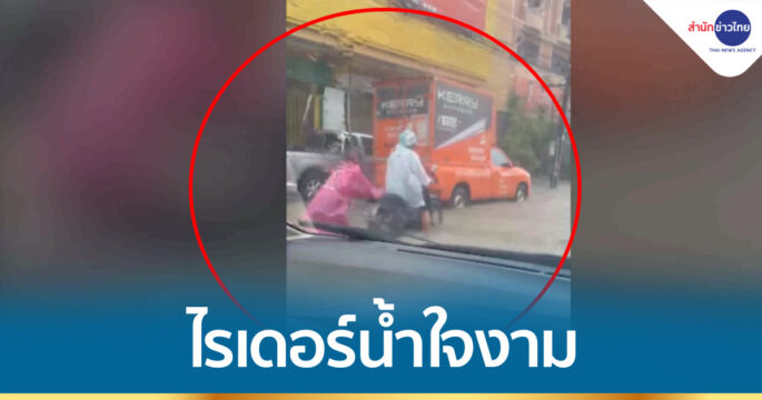 สุดซึ้ง! น้ำใจไรเดอร์เมืองตรัง หลังฝนตก 2 ชั่วโมง มีน้ำท่วมขัง หนุ่มไรเดอร์เห็นรถเสียเพราะขี่ฝ่าสายฝน รุดเข้าช่วย ทั้งๆ ที่มีภารกิจต้องรีบไปส่งออเดอร์ให้ลูกค้า