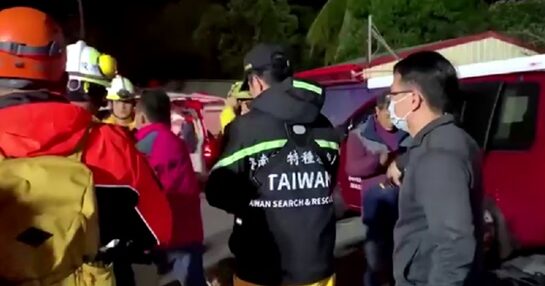 เจ้าหน้าที่กู้ภัยและตำรวจดับเพลิงไต้หวันเข้าช่วยเหลือผู้ประสบภัยหลายสิบคนที่ติดอยู่ในอาคารที่พักอาศัยและบ้านเรือนในเมืองไถ่หนาน ทางภาคใต้ ที่ได้รับความเสียหายบางส่วน